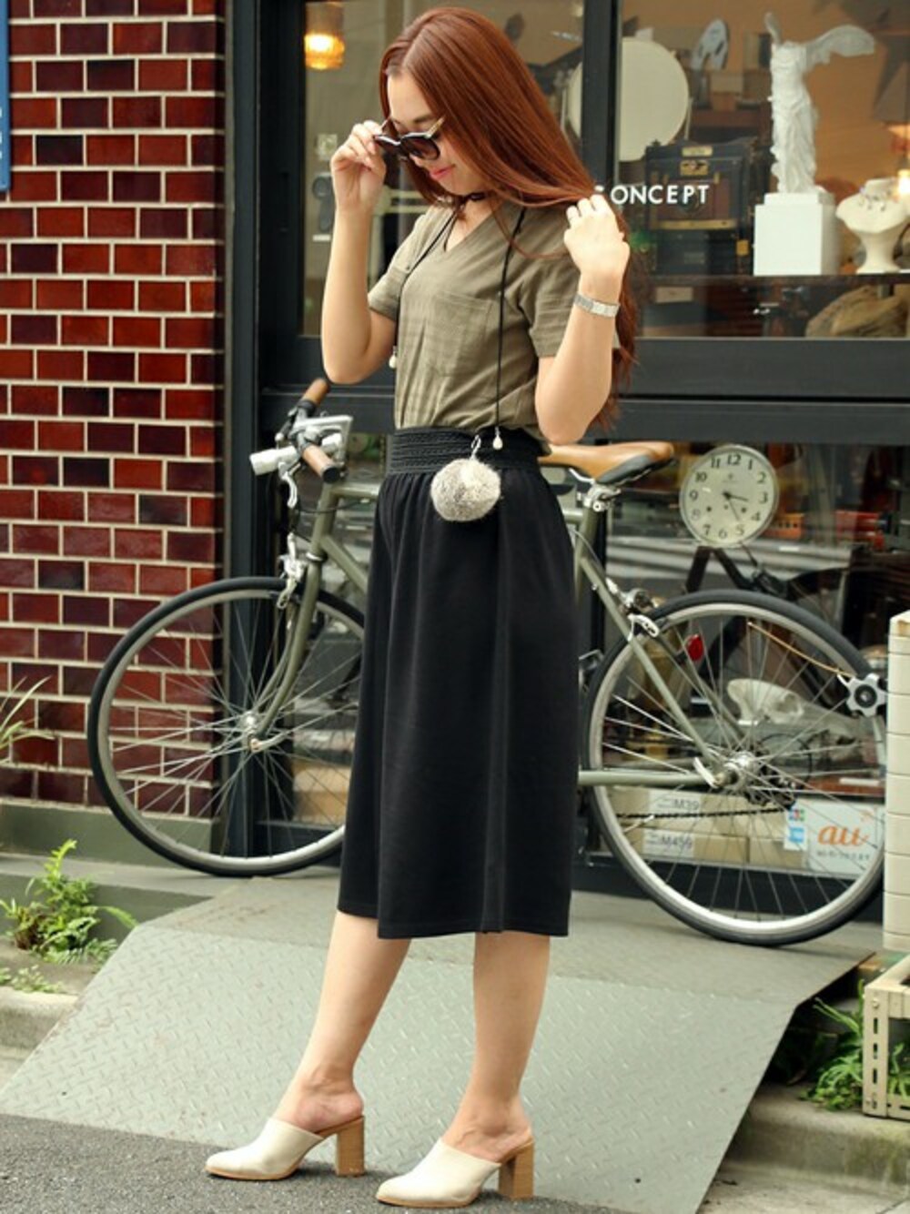 秋色カジュアルコーデ♪ 黒とカーキの組み合わせがカワイイ(。>v<。)♡ ファーポンポンがコーディネートを 今年らしくしてくれます!!