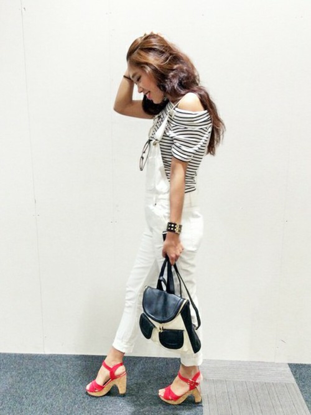 胸元にあしらったビジューがレディなオフショルダー☆ ネックラインを華奢見えさせるオフショルダーは今期必須のアイテム! ショルダーラインを見せるのに抵抗がある人でも、鎖骨をチラ見せぐらいのラインに調整してオフショル気味に着こなすのがトレンド☆ 暖かい日のピクニックスタイルにいかがでしょうか♪