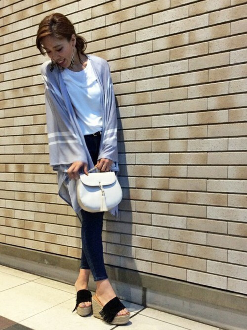 今年人気のオルテガカーデはフリンジのノースリTがセットなんです♡ 足元はTシャツに合わせてフリンジサンダルをチョイス\(^o^)/ きれいめにもカジュアルにも馴染みやすいのでおススメです!!