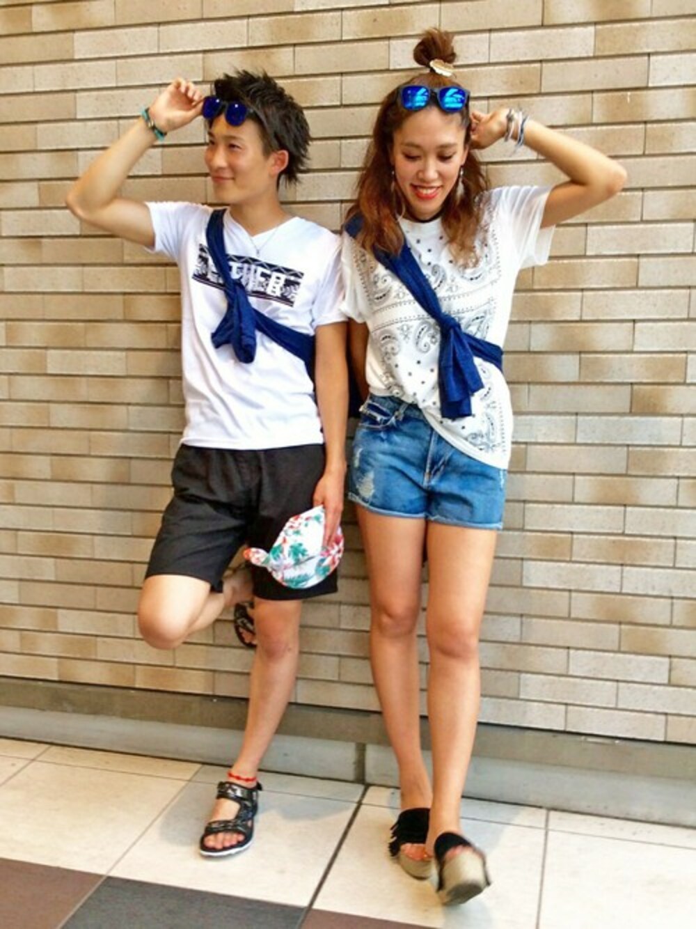 まだまだ暑いこの時期に! 夏☀カップルにオススメなフェスstyleのご紹介です☀ ブルーとホワイトでまとめ、爽やかにまとめました(^^) お揃いのパーカーは、夕暮れの肌寒い時に羽織れるので便利です!
