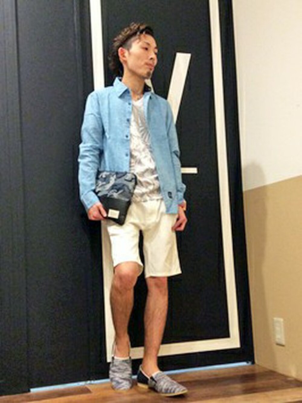 INをホワイト系でまとめ、麻素材のシャツを羽織った初夏コーデです(๑→ܫ←)ノ♫♬ フラワー柄のTシャツは1枚で着てインパクトあります!!真夏もヘビロテ間違いなし!! 足元は素足にスリッポン(・ω・)☆大人ぽっく仕上げました★