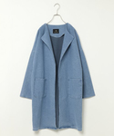 通常のデニム素材よりも柔らかくて着回しやすい、カットデニム素材のコートです。 シーズンの変わり目にちょうど良い生地感で、ライトアウターとしてあると便利! フロントはノーカラー&ボタンレスですっきりと。 ガウン感覚でゆるっと羽織りたいアイテムです。