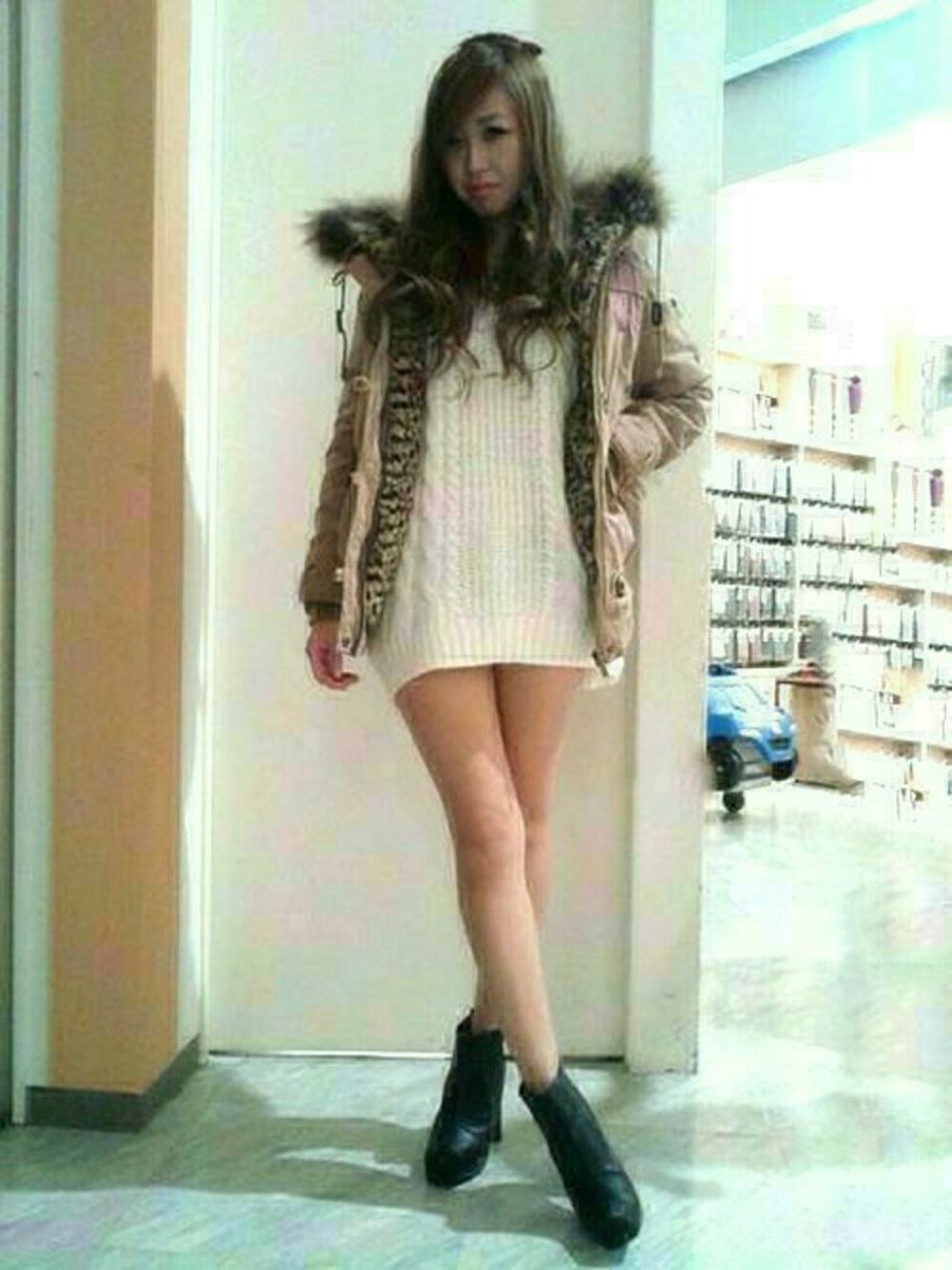 ショート丈☆ベージュアウターとふんわり白ニットの可愛らしいコーデのご紹介♪レオパード柄のボアがとっても暖かくフード周りのボリュームファーが大人気のミリタリーアウター☆ライナー付きで取り外し可能で防寒機能抜群なんです♪ファーはティペットにもなるので、ニット合わせにティペット使いでコーデするのもオススメです!ぜひチェックしてみてくださいね!☆