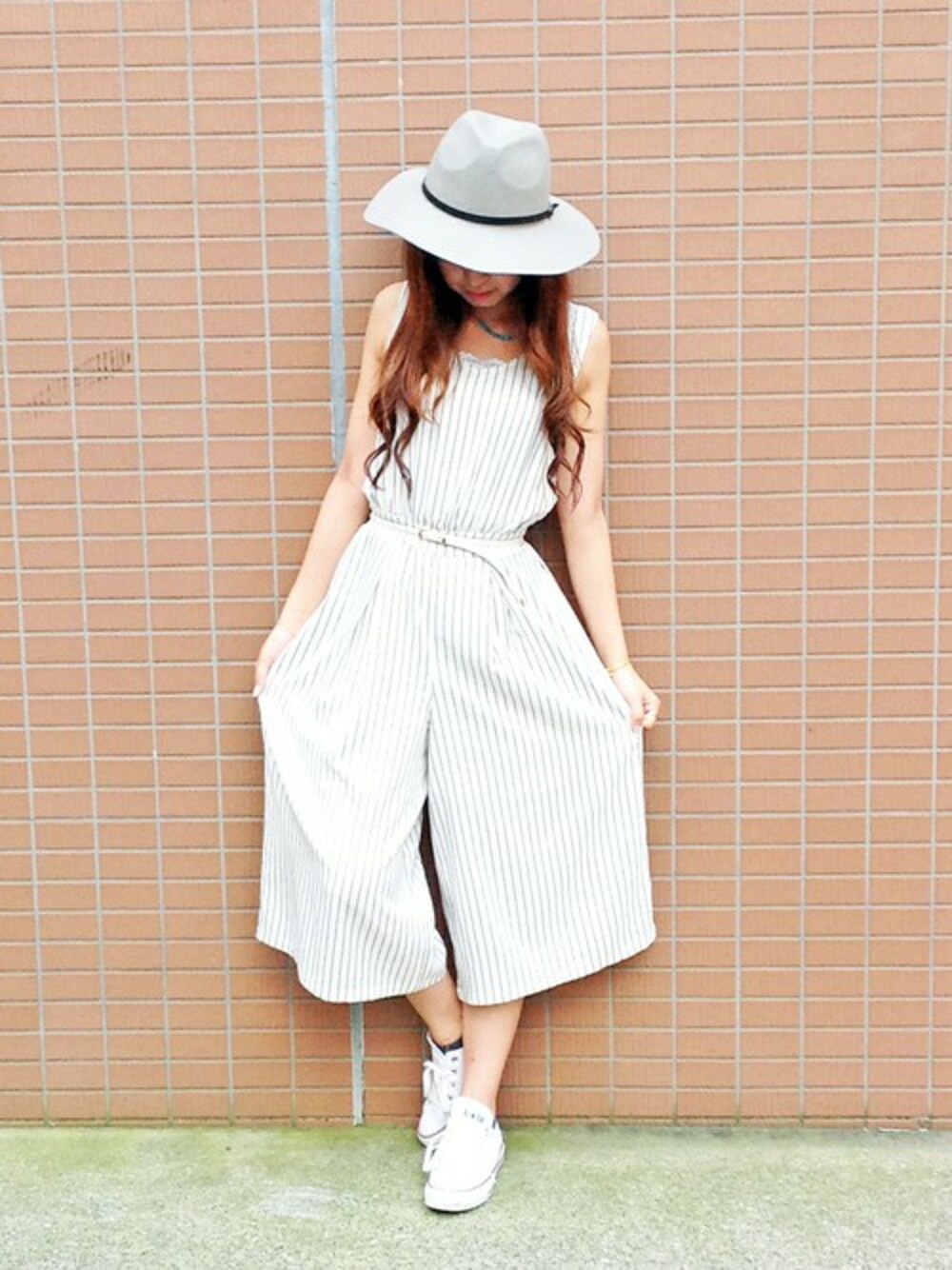 オールインワンのガウチョスタイルです♬ ウエストマーク&ストライプで足長効果&スタイル抜群に(●´∀`●*)ゝ 足元にコンバースでちょっと外して、こなれた感じに☆*.・(*ゝ∀・*)ノ