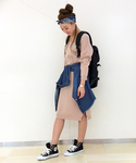 春っぽくピンク×ホワイトでスタイリング^^ ベルトのアレンジによって雰囲気が変わるので、この春のマストアイテムですよー!! 私の身長157cmでベルト付けて膝下5cmくらいです☆