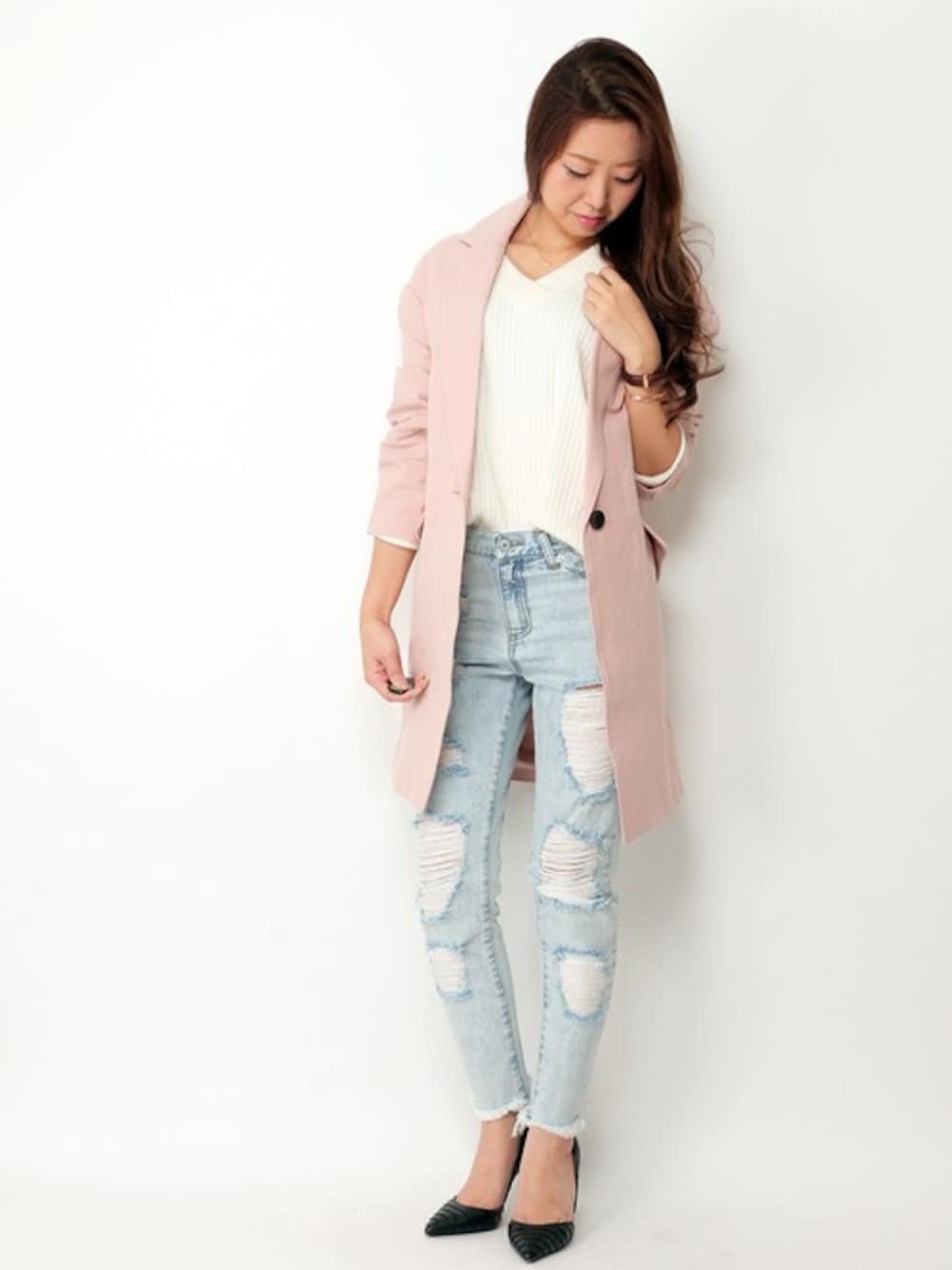 春にピッタリなスプリングコート♪きれいめにもカジュアルにもと、着回し自在な春のマストアイテムです! 春色のダメージデニムパンツとなら、ギャップコーデで大人っぽい着こなしに★