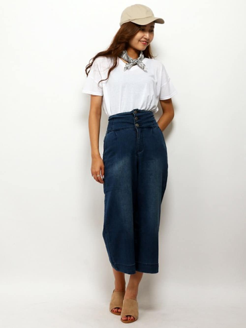 トレンドのバンダナコーディネート☆ 今年はアクセサリー感覚でバンダナを取り入れるのが流行中!! 白でまとめれば、夏らしく爽やかな印象になります(。>v<。) ワイドパンツのインパクトのあるシルエットがで、シンプルになりすぎません!