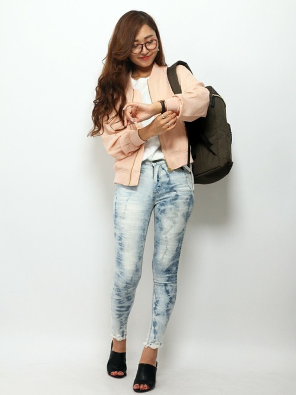 まだまだ人気の止まらないMA-1! ジョーゼット素材でポケット口に刺繍があってキレイ目に着こなせますよ゚ヽ(*´∀`)ノ゚.:。+ デニムはタイダイ風のウォッシュ加工スキニー!!いつものデニムスタイルをランクアップしてくれます♥