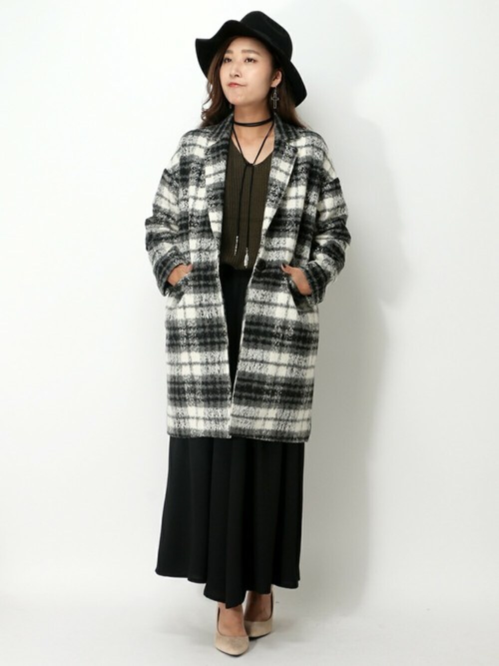 airiのチェスターコート「シャギーチェックチェスターコート 」を使ったコーディネート