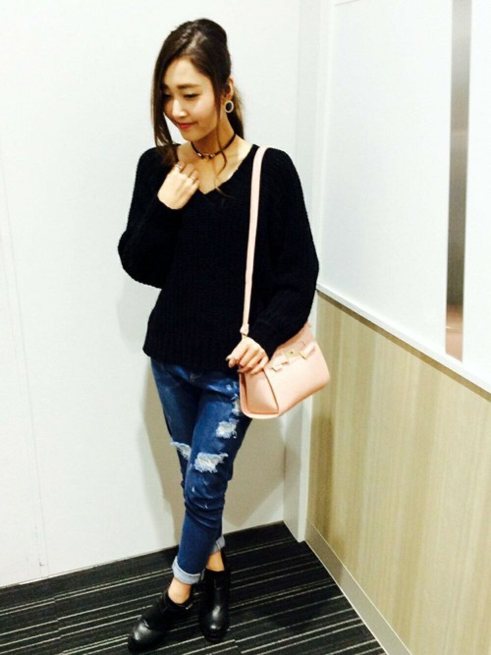 airiのニット/セーター「カサネVモールプルオーバー」を使ったコーディネート