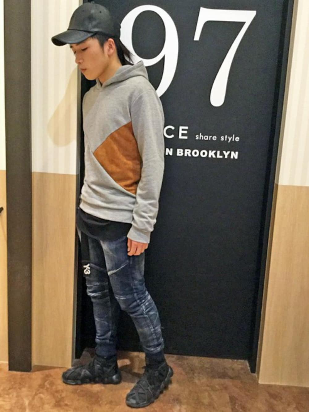 橋川 広太郎のパーカー「裏毛スエード切替パーカープルオーバー」を使ったコーディネート