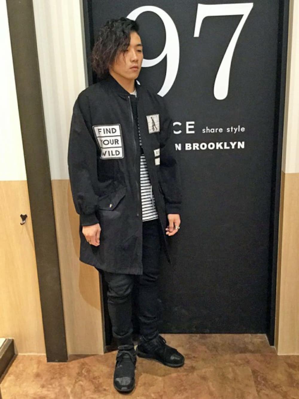 今年流行のMA-1のロングバージョンです! ボディにはワッペンが付いておりラグジュアリーストリートを思わせるデザインになっております(o^—^o) スキニーパンツと合わせることで今年トレンドのVラインを簡単に作ることができるオススメアイテムです!!