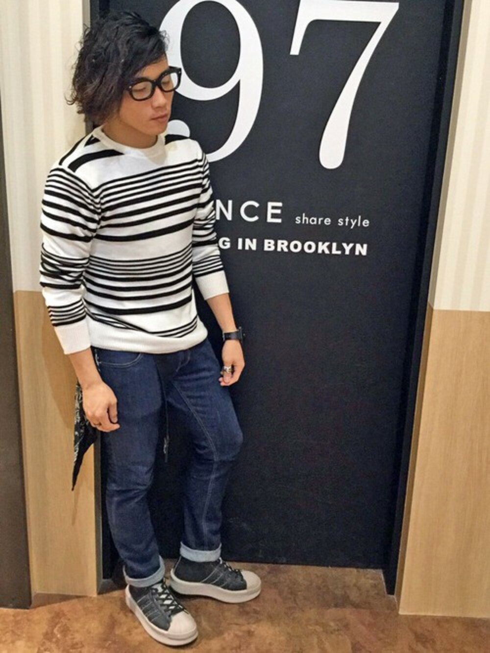 橋川 広太郎のニット/セーター「ボーダーリンクス編みニット 」を使ったコーディネート