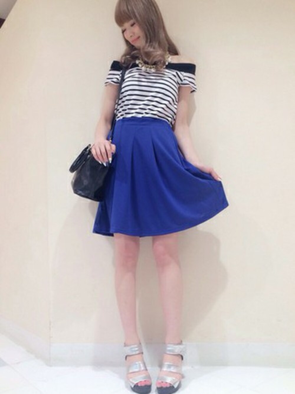 YukaのTシャツ/カットソー「ボーダーオフショルTシャツ」を使ったコーディネート
