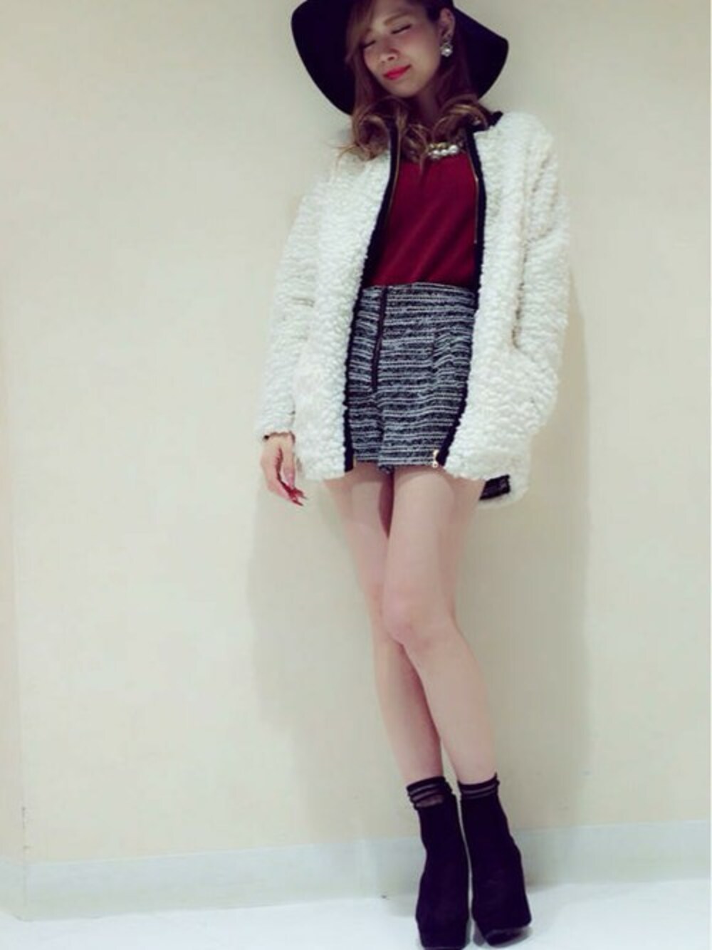 ボリューミーで見た目も暖かなボアコート☆ ZIPやポケットのパイピングが効いて、すっきり着られます。 ノーカラーだからハイネックとも好相性◎ 女の子らしく合わせたい方は必須アイテムですよ♪ 丸栄店yukaさんおすすめコーディネートです♪