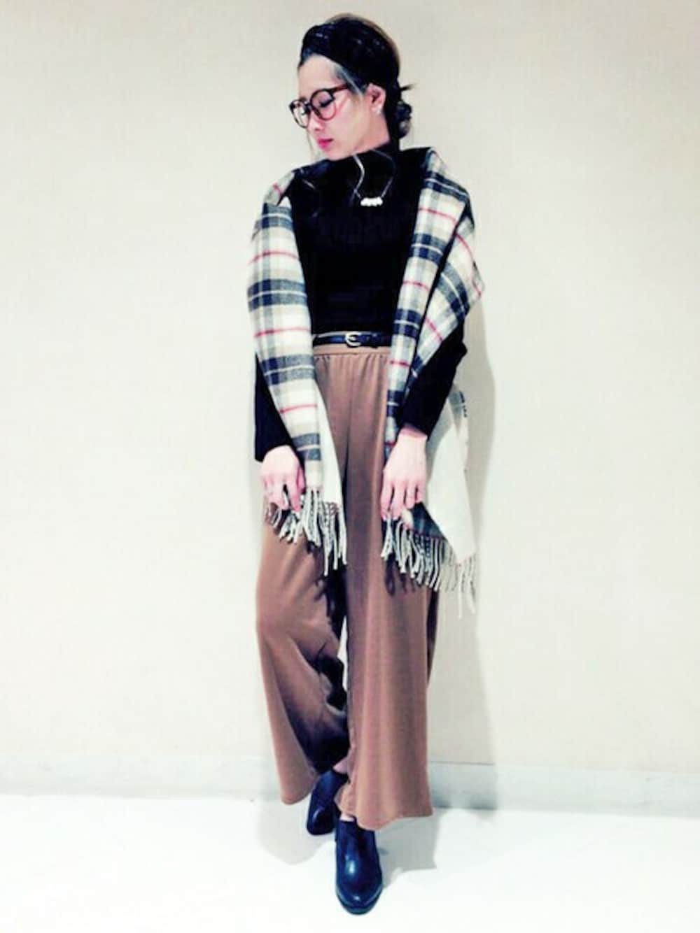Yukaのニット/セーター「ハイネックリブ編みトップス」を使ったコーディネート