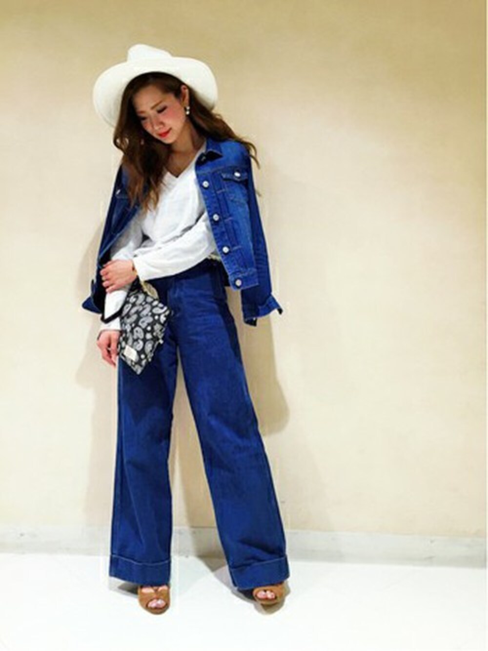 デニムバギーパンツ(≧∇≦)キャー♪ トップスをインしてベルトでウエストマーク♪さらにヒール靴で脚長効果♡ トレンドの70年代風コーデに合うだけでなく、着痩せ効果もあるという最高の優れもの♪ 皆さんもトライしてみて(´ω`*)ネー♡