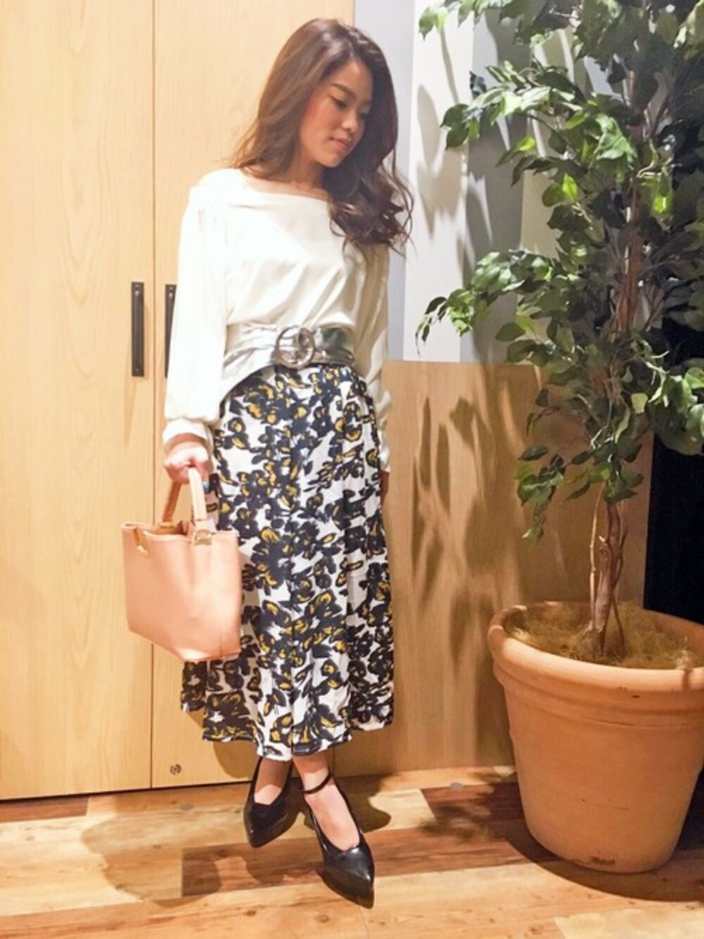 肌見せが注目な今年の春♡オフショルアイテムは絶対取り入れたいアイテムです♪ シンプルなトップスに花柄のジョーゼットスカンツでアクセントにすれば 大人可愛いコーデの仕上がりです♡