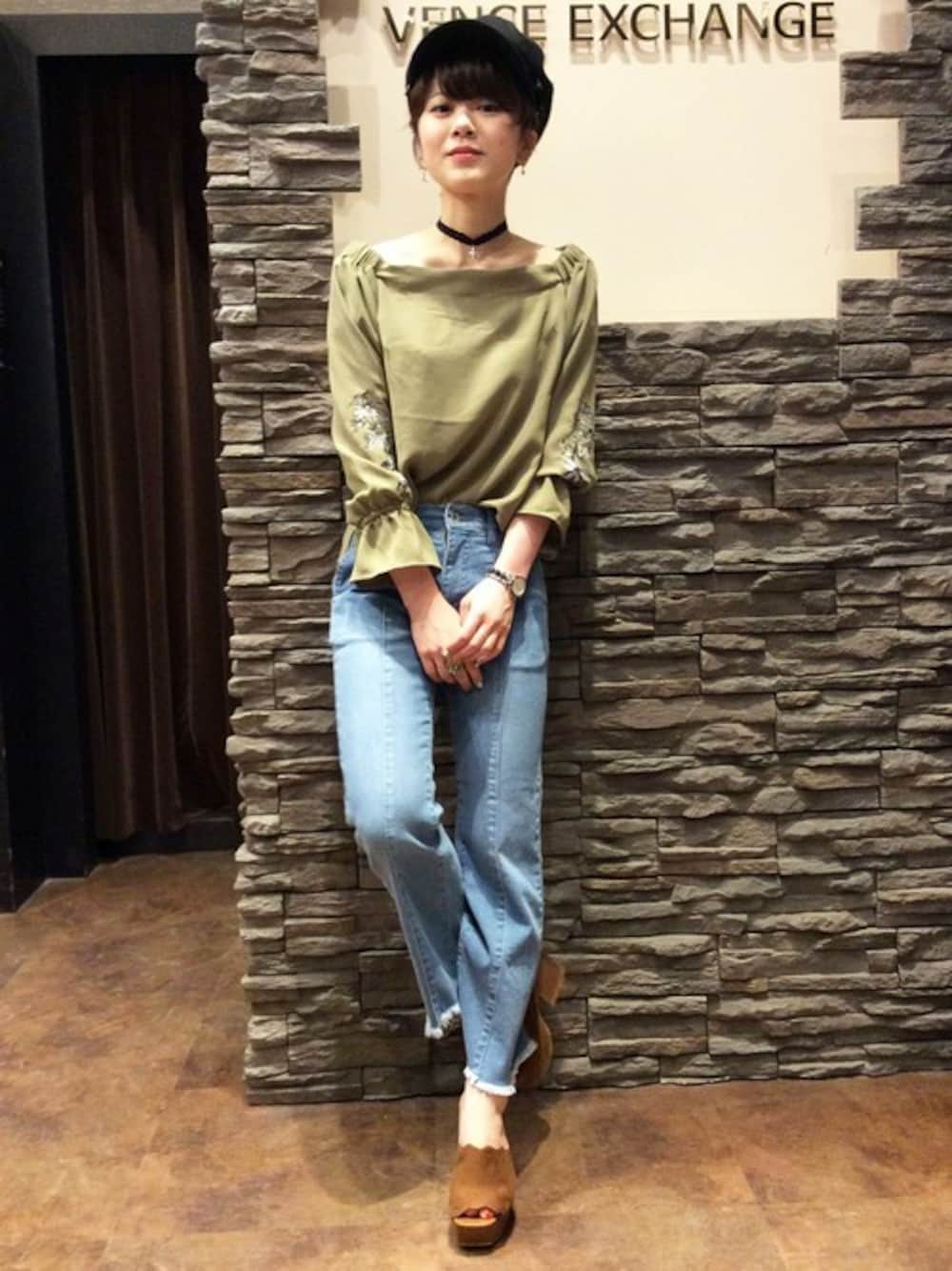 ざわわのシャツ/ブラウス「刺繍オフショルスモック 」を使ったコーディネート