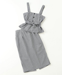 ビスチェ風のトップスと、タイトスカートをコーディネートした、ギンガムチェック柄のセットアップ! リボンでキュッとウエストマークされたビスチェに、タイトスカートのバランスが絶妙♪ 上下を別に着ることでさらにコーデの幅が広がります。