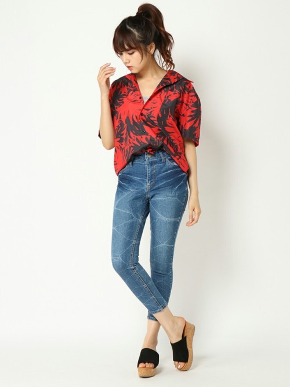 COX公式オンラインモデルのシャツ/ブラウス「ボタニカルオープンカラーシャツ」を使ったコーディネート