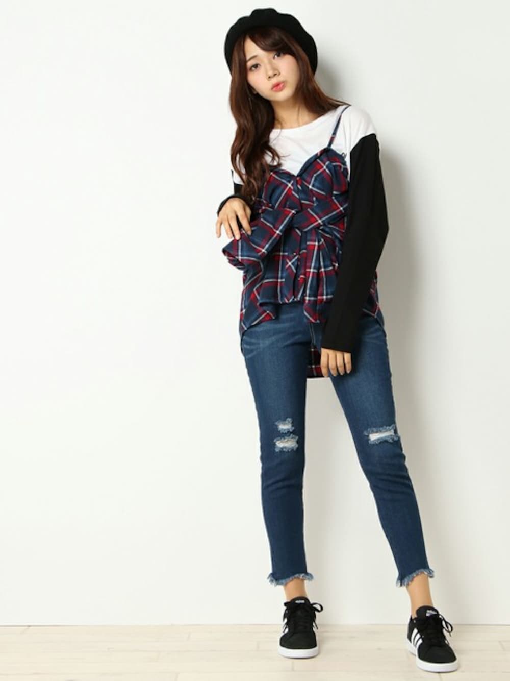 COX公式オンラインモデルのシャツ/ブラウス「3WAYチェックシャツ」を使ったコーディネート