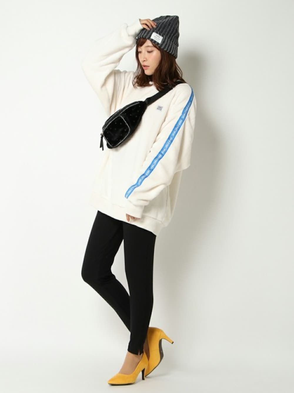 ずっと触っていたくなるような、さらさらモコモコなボアトップス。 袖にデザインされたラインテープで、ナチュラルなストリート感が楽しめます。 オーバーサイズにリブレギンスの合わせが今年らしいです♪
