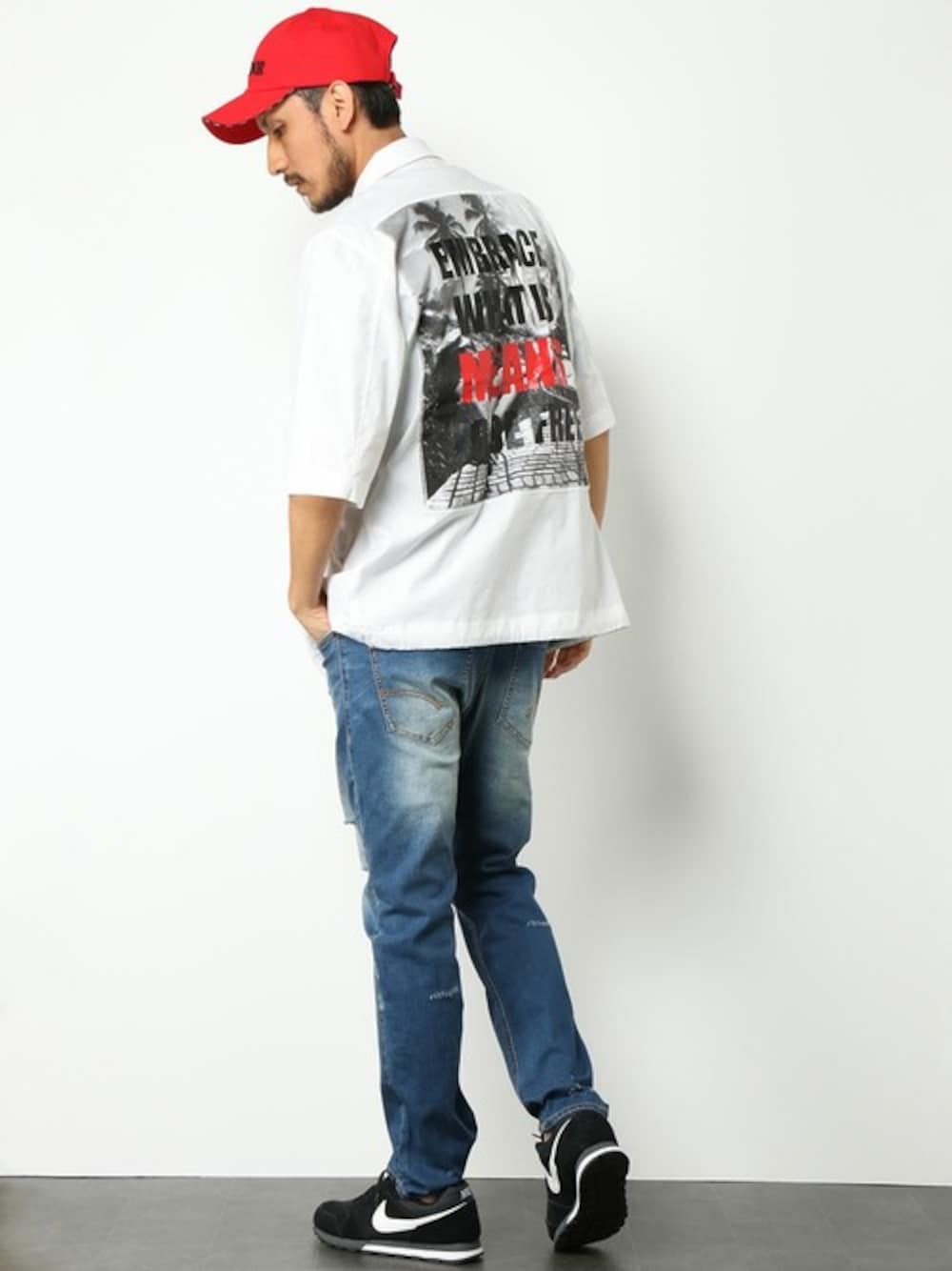 COX公式オンラインモデルのナイロンジャケット「バックワッペンコーチジャケット」を使ったコーディネート