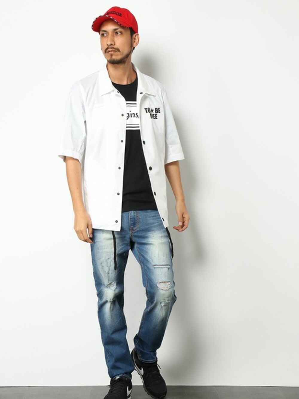 シャツ感覚で着たい半袖のコーチジャケット。 胸元はワンポイントロゴ、バックスタイルにはリゾート感あふれる転写プリントを施した大胆なデザインです。 前を閉めてシャツとして、Tシャツの上から着る軽めのアウターとして、夏の新しいアイテムになってくれること間違いなし★