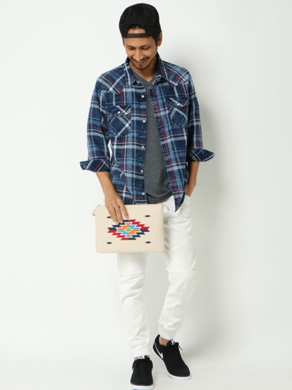 COX公式オンラインモデルのシャツ/ブラウス「インディゴチェック七分袖シャツ」を使ったコーディネート