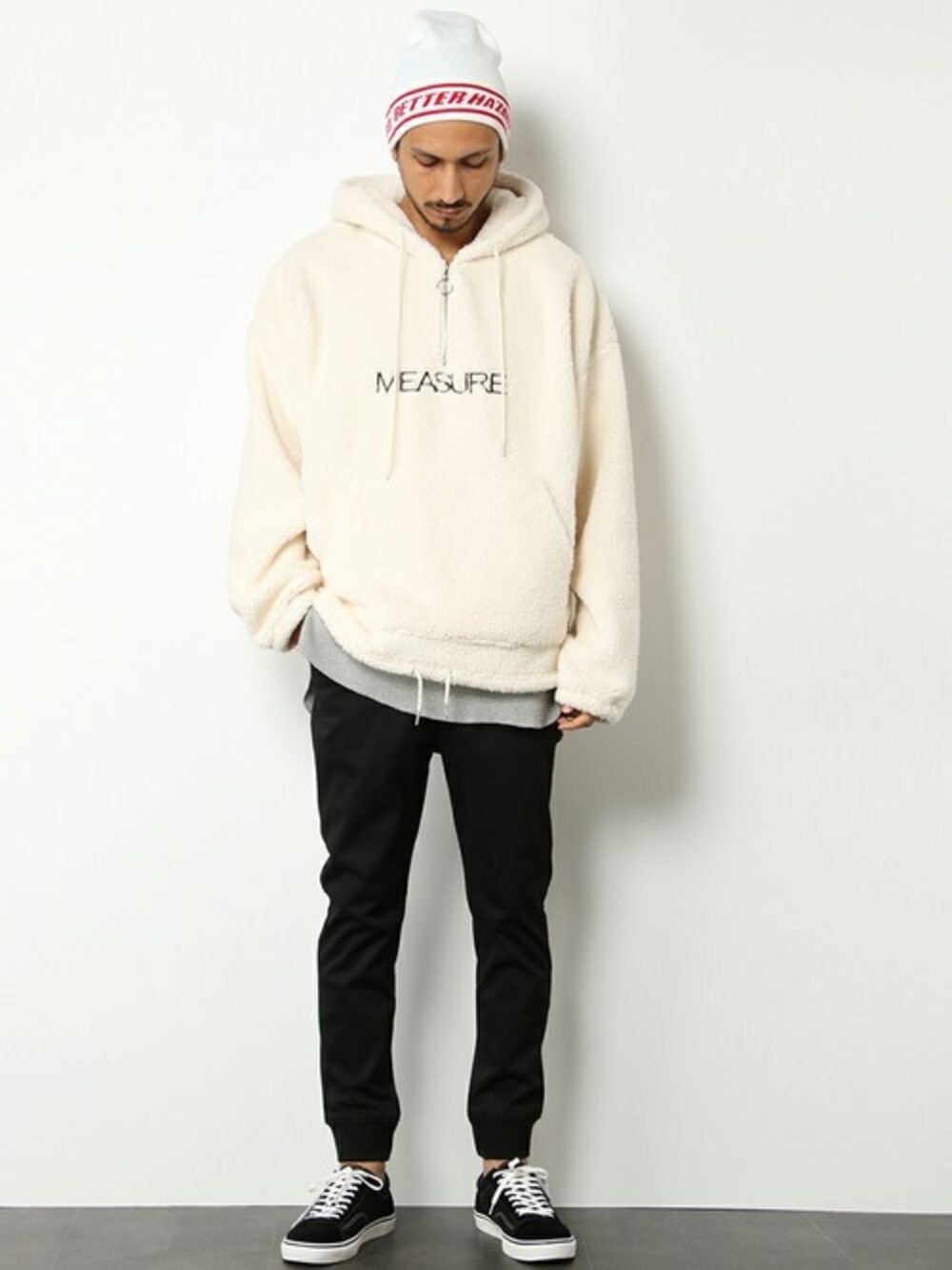 ふわモコのボリュームが着こなしに鮮度をプラスしてくれる、ボア素材のハーフジップパーカー! アノラックパーカー風のハーフジップに、ロゴの刺繍が入ったスポーティーなデザインが秀逸です。 細身のボトムと好相性★