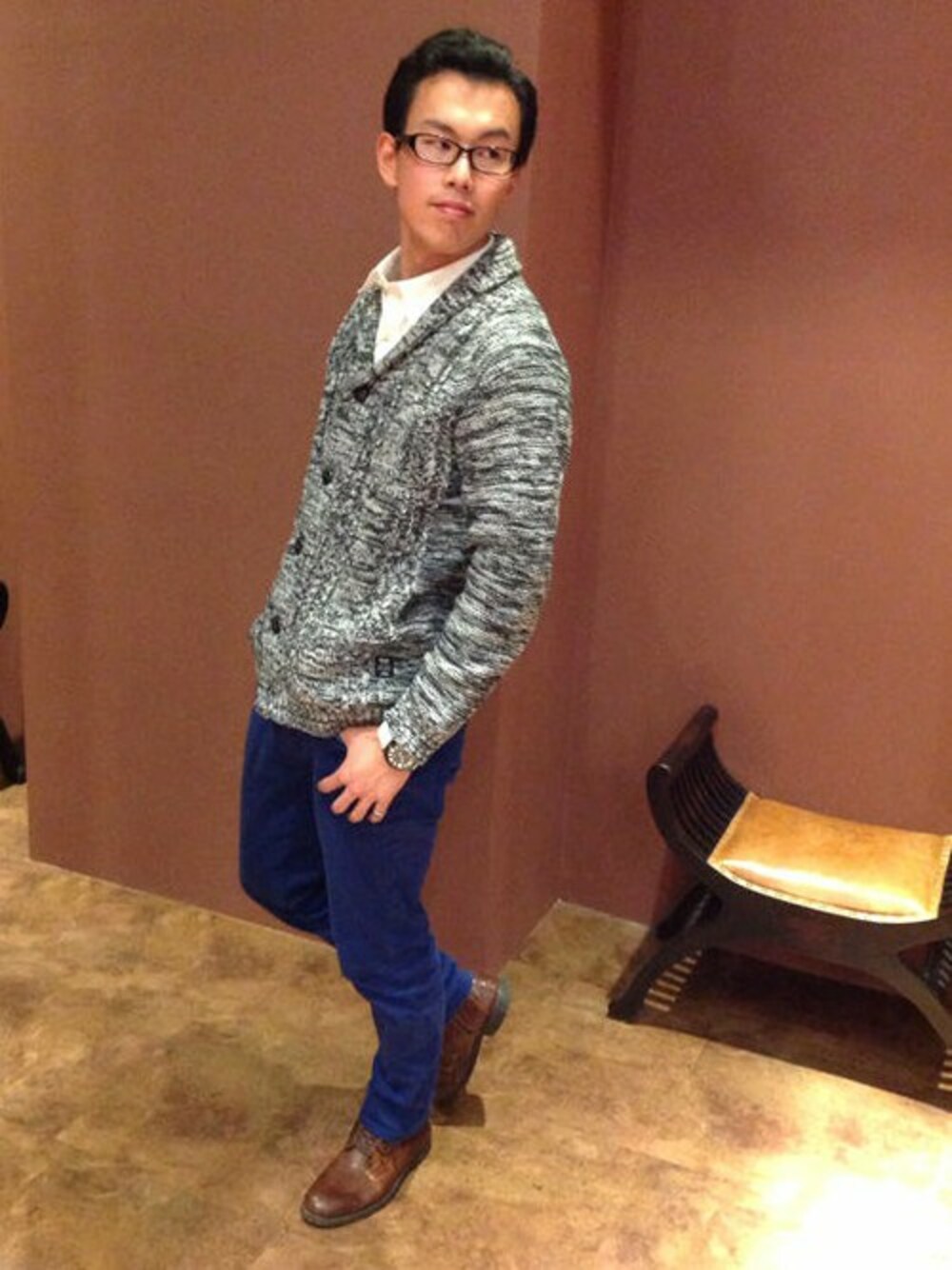 昨年も人気だったMIXカラーの展開。グレー・ブルー・レッドの3色全てMIXカラーになります。 厚手のニットカーデなので防寒性もバッチリです。 カジュアルにもプレッピーにも対応できるアイテム。