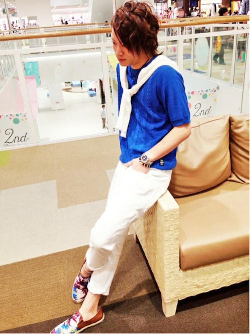 デザインはシンプルでも、ケーブルがさり気ないおしゃれ感◎! 白パンと合わせてさわやかさUP!! 足元にはポイントで柄をいれるのも◎! 夏のお出かけスタイルにピッタリです(^^)