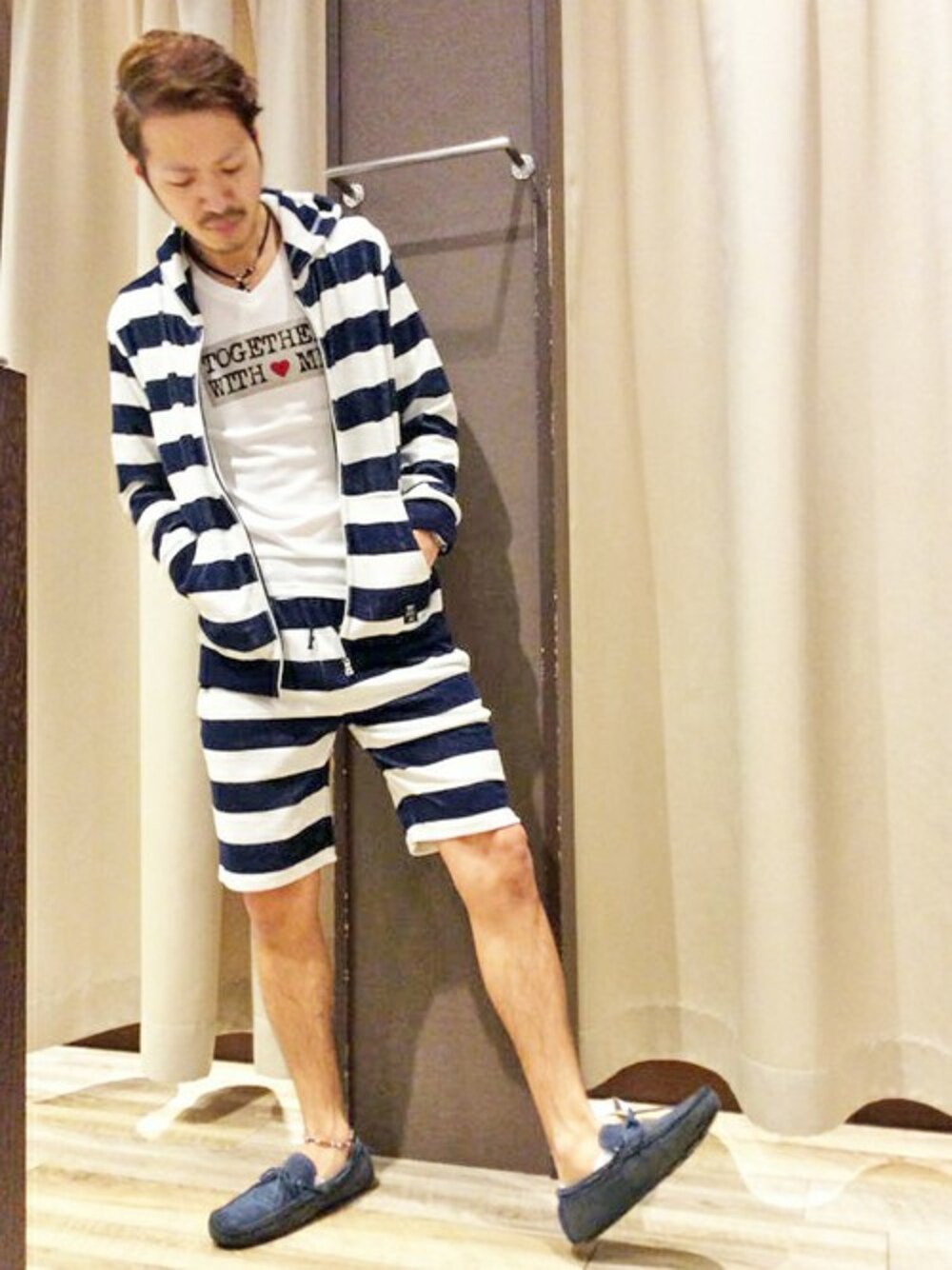 VENCE EXCHANGE MEN'S STAFFのパーカー「パイルボーダーZIPパーカー」を使ったコーディネート