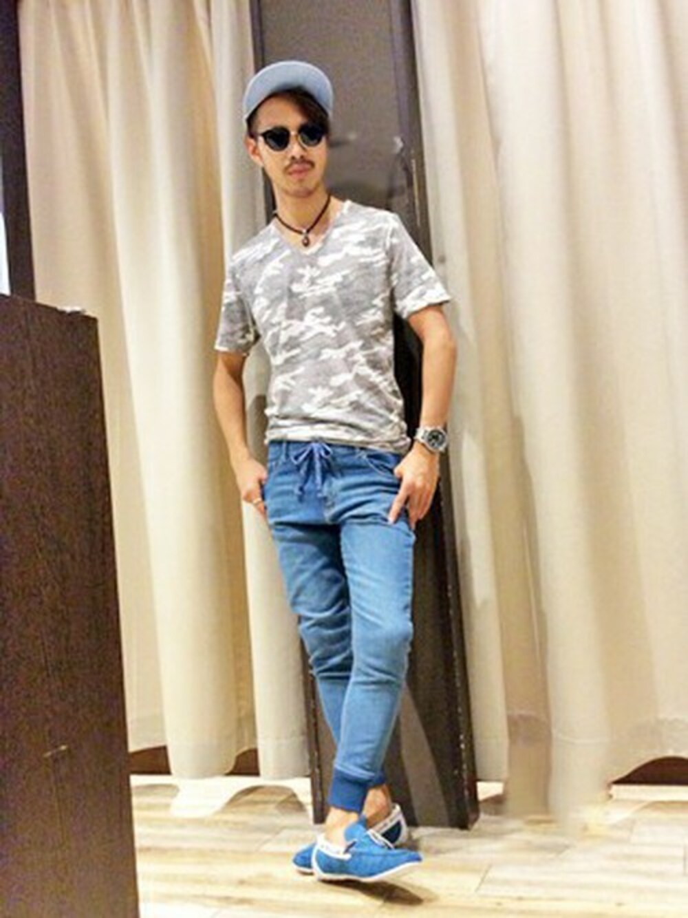 人気の総迷彩柄で作られたTシャツは、トレンド色の強くなってきたミリタリースタイルにマスト! デニム×サングラス×キャップでカジュアルに外しても◎
