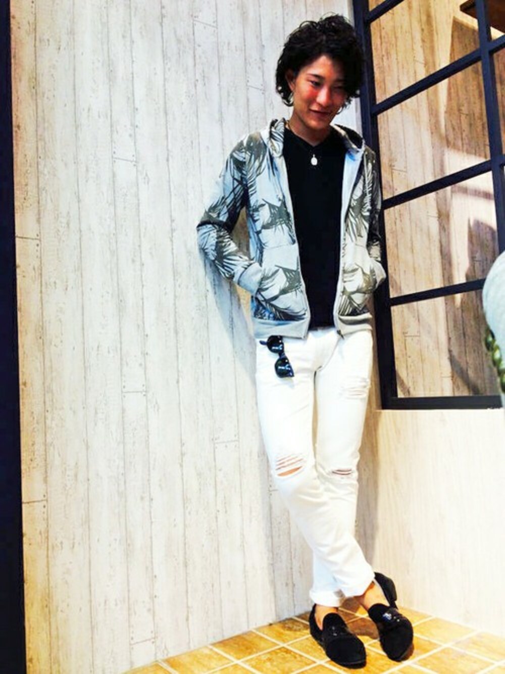 VENCE EXCHANGE MEN'S STAFFのパーカー「ミニ裏毛リーフ柄ZIPパーカー」を使ったコーディネート