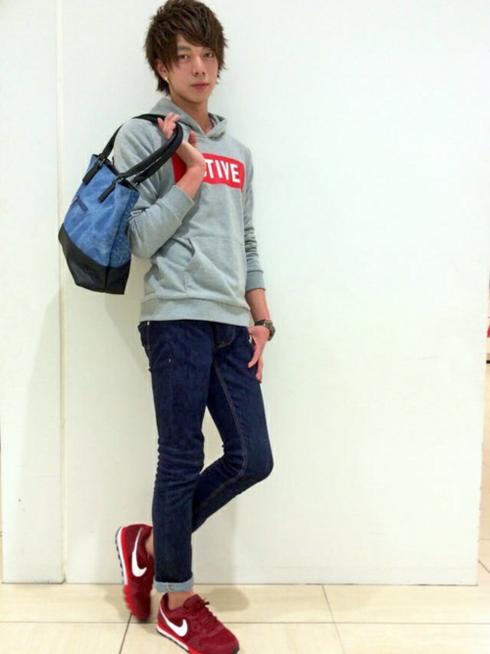 定番アイテムの組み合わせで『間違いナシ』です!! 色味をキレイにまとめてるので、シンプルなカジュアルスタイルに(*´꒳`*) パーカーロゴの赤とSHOESの赤がアクセントになって◎