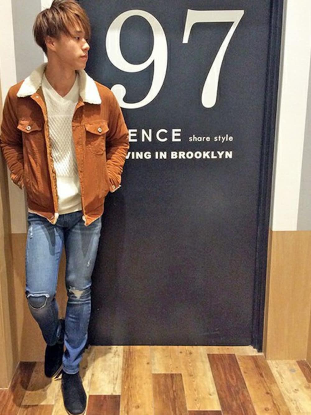 VENCE EXCHANGE MEN'S STAFFのデニムジャケット「ボアコーデュロイGジャン」を使ったコーディネート