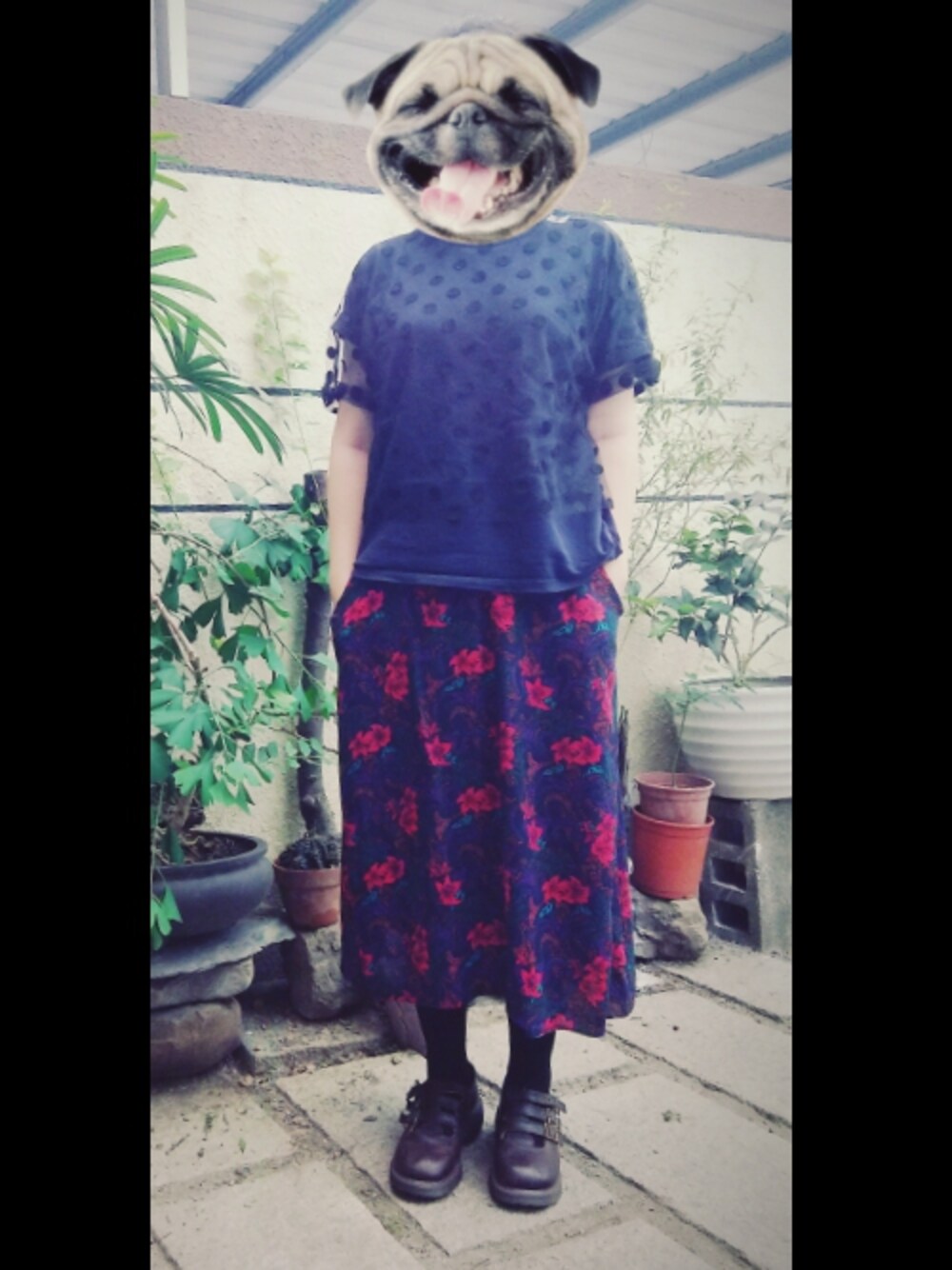 編集したから紺に見えないボロTシャツ mobo ドットチュールトップス ブランド名わからない 花々スカート vintage my愛用シューズ Dr. Martens(used) 今週ブルー系率高っ。まさに紺週。