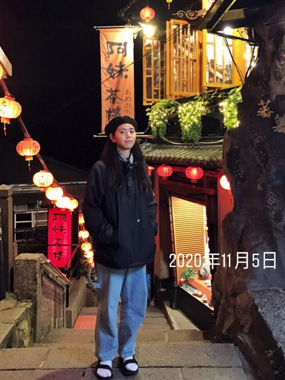 九份老街這裡有一個很會拍照的阿伯