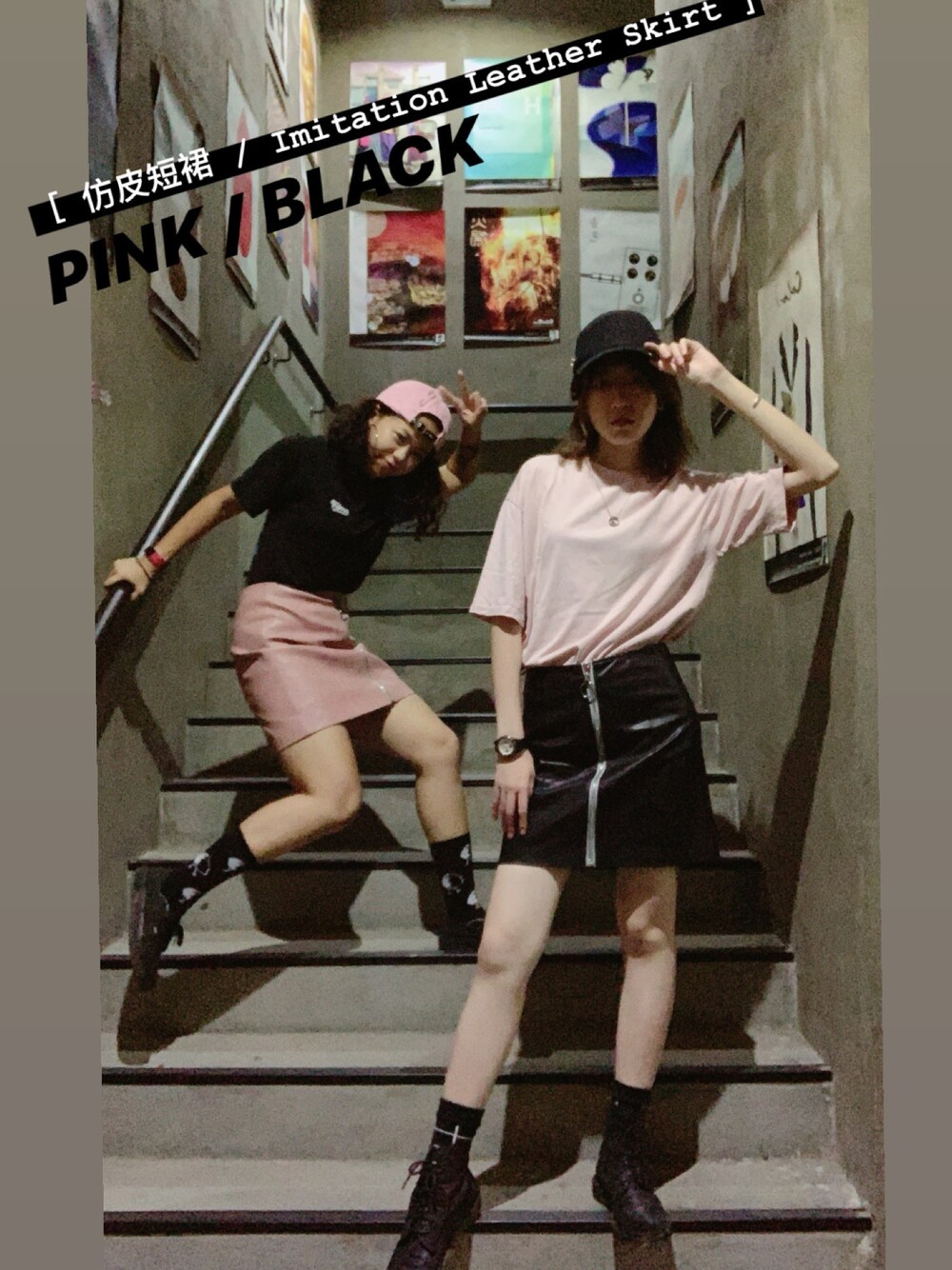 NO.42 Imitation Leather Skirt - Pink / Black . 🔎ON SALE NOW www.pinkoi.com/no-42