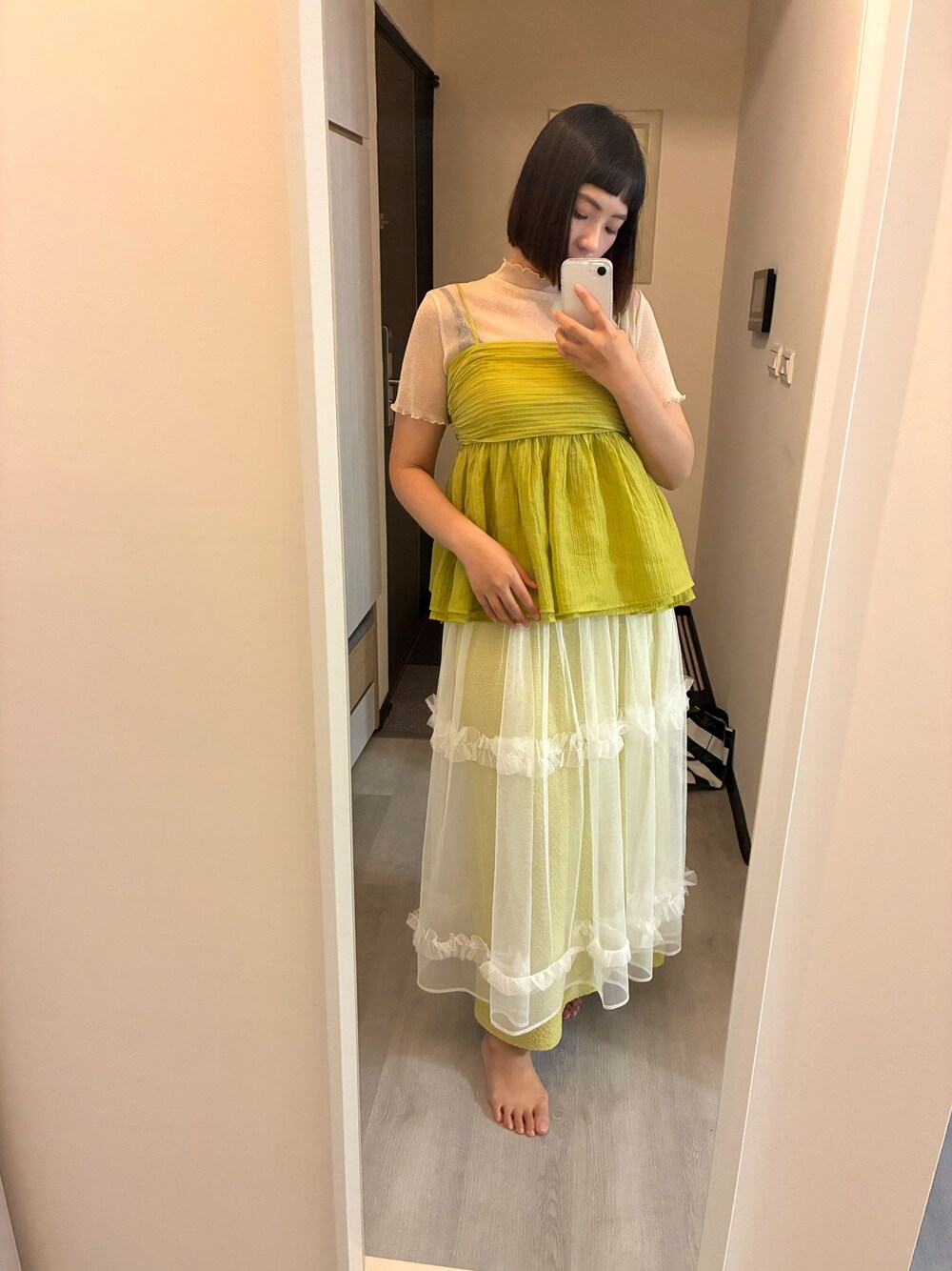 🌸首先謝謝大家的觀看 全身皆MEIERQ 衣服 - 細肩帶背心可以穿出多樣化,布料有兩層增加層次及豐富上身,搭配裙子、牛仔褲都很好看 - 紗裙是外罩裙 今年迷上把紗紗批在自己身上,有弱化鮮豔色彩的功能 也有修飾腿型的效果喔!