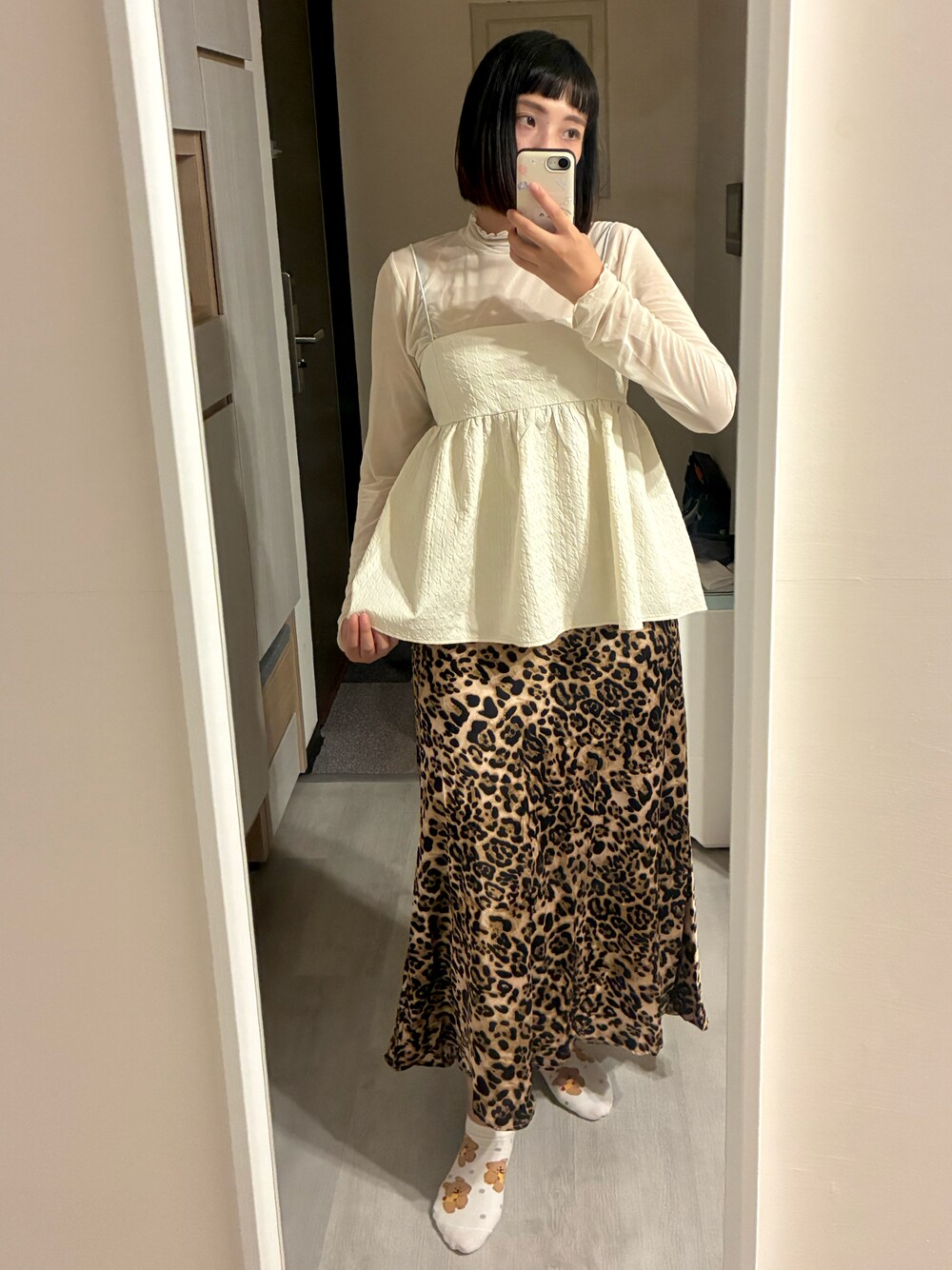 謝謝大家觀看🫶🏻 🍊秋天在市集買了好吃的橘子回家 - 內搭米色透膚長袖上衣:木耳高領邊,適合所有疊穿背心 - 細肩帶疊穿背心:材質有厚度,可以呈現澎澎的感覺 - 豹紋長裙:緞面材質不褪色,保持豹紋亮麗,寬鬆版型顯瘦百搭