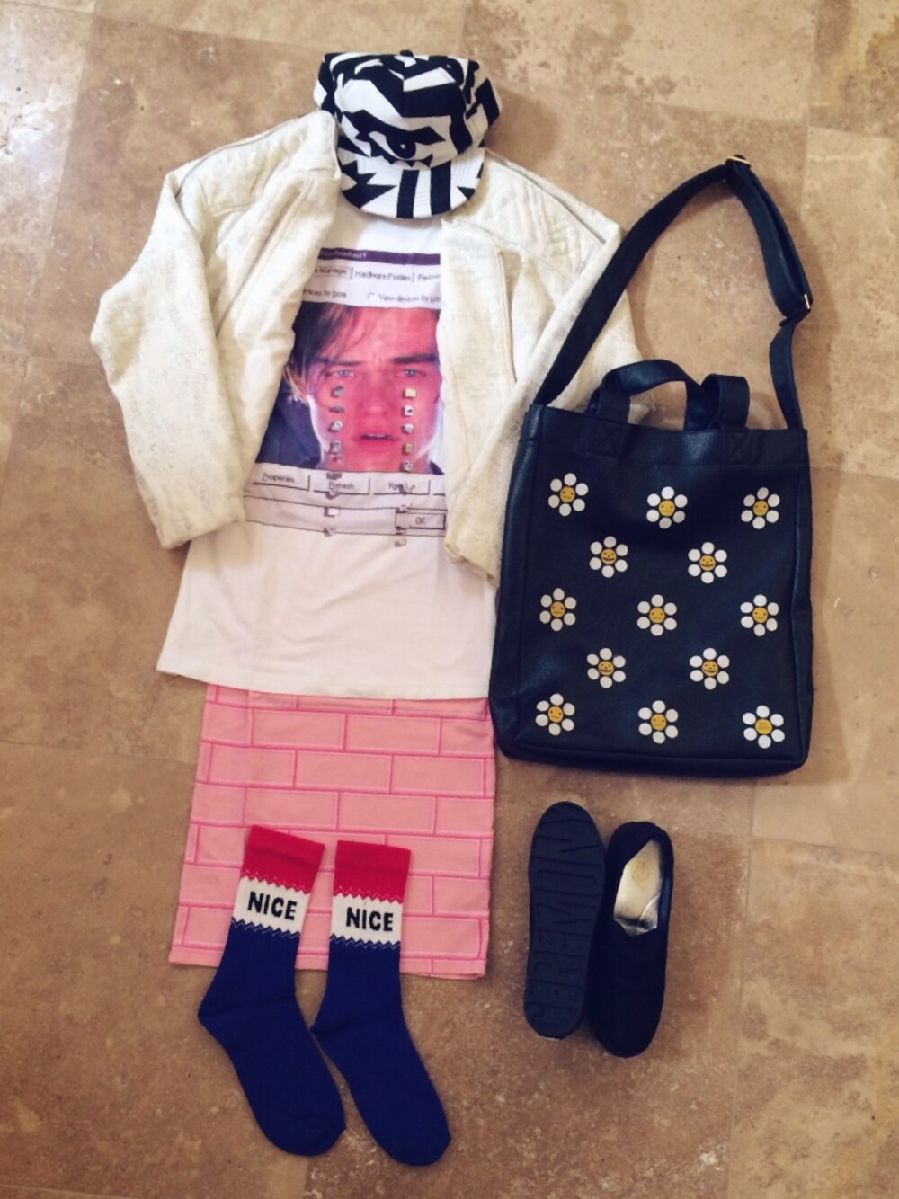 石井幸子のノーカラージャケット「JACQUARD BOMBER JACKET WITH ZIPS ON THE SHOULDERS」を使ったコーディネート