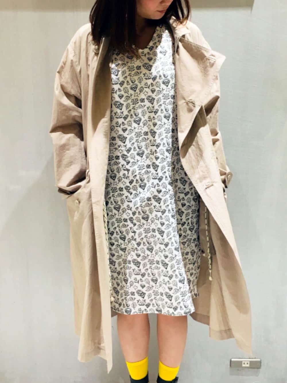DEVASTEEの柄ワンピースは、 お花、葉っぱ、かたつむり、ダイヤモンドなどとってもかわいい柄です!! イエローのカラーソックスで春感を出してみました!!