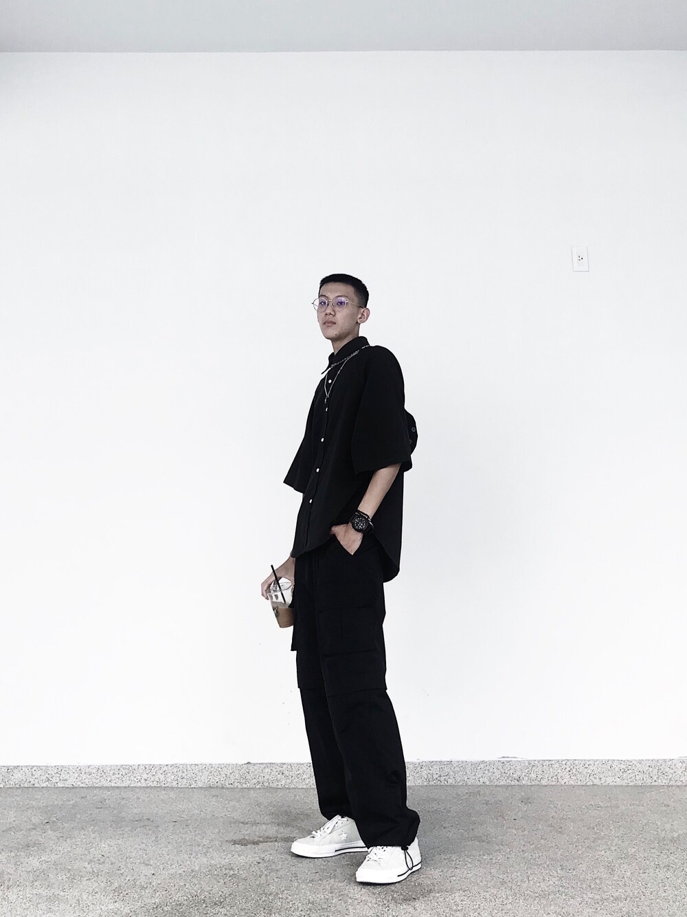 夏天來臨~短袖落肩襯衫讓身型不那麼薄,配上寬鬆工作褲,整體來說不會太瘦😂,加上飾品點綴和素色帆布鞋,簡單好看又舒適~ - Ig:ruichen0112