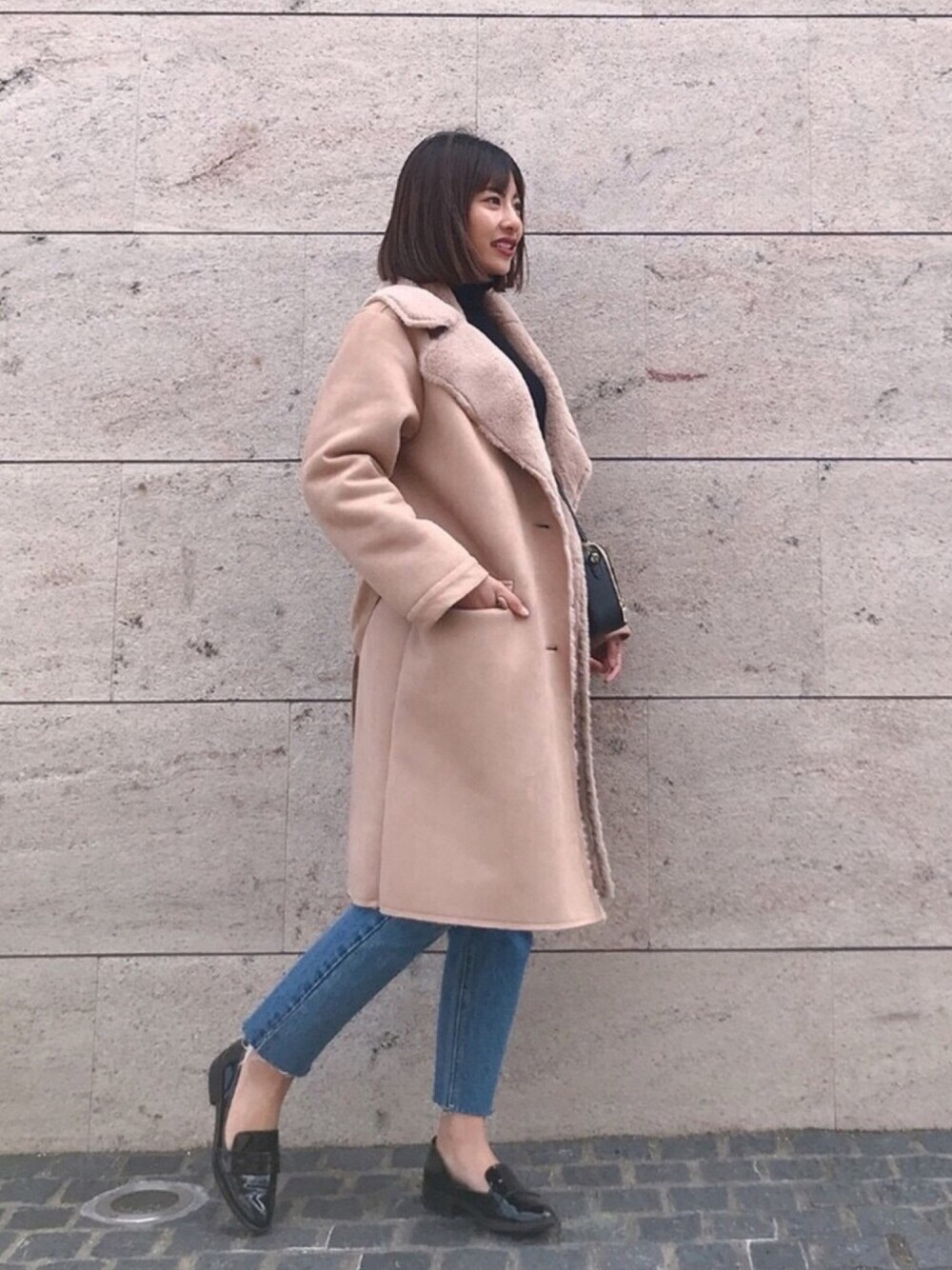 Vicente👖(Vicente)のムートンコート「フェイクファーガウンコート」を使ったコーディネート