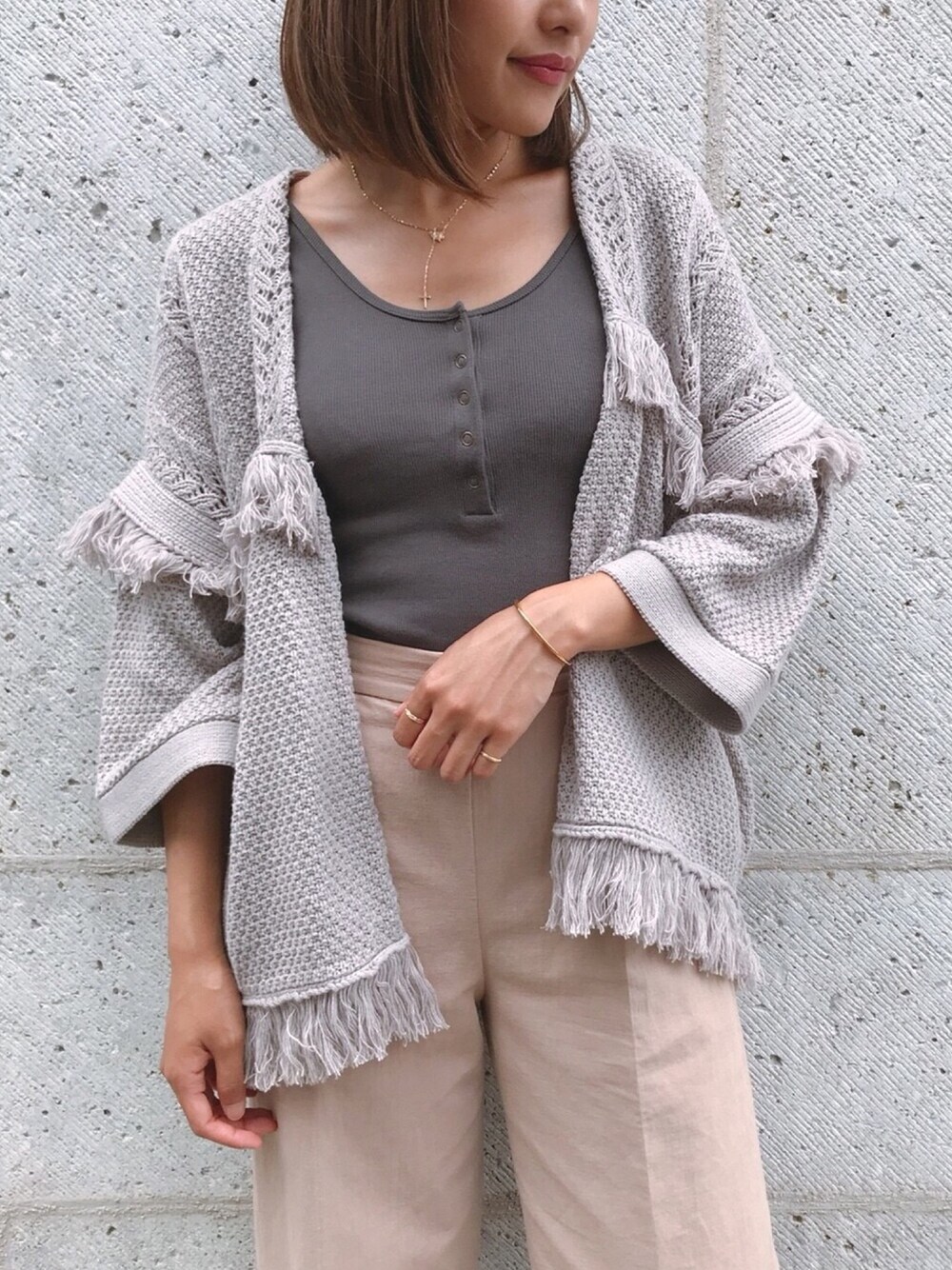 Vicente👖(Vicente)のカーディガン/ボレロ「フリンジニットカーディガン」を使ったコーディネート
