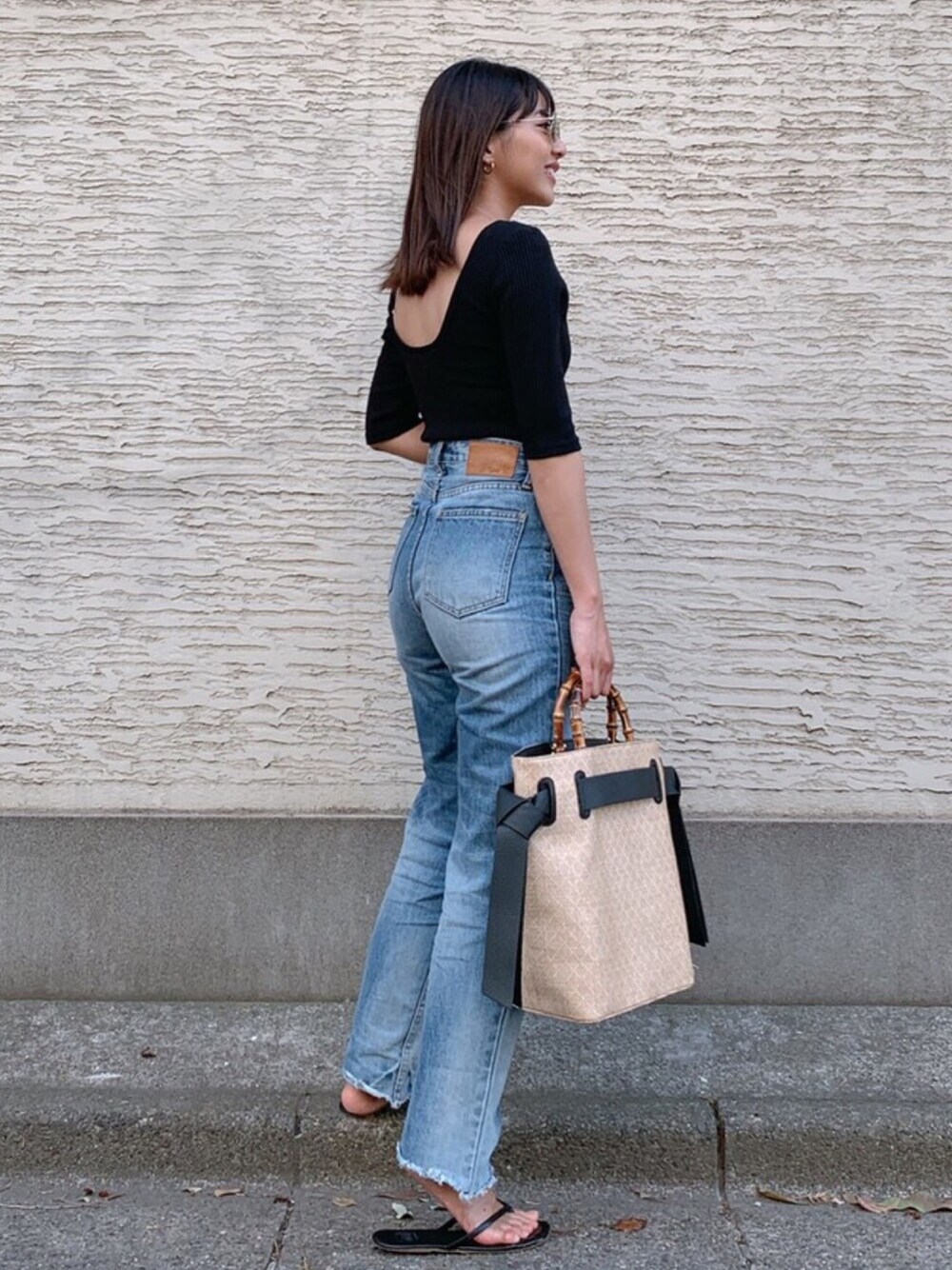 Vicente👖(Vicente)のTシャツ/カットソー「BackオープンリブTOPS」を使ったコーディネート