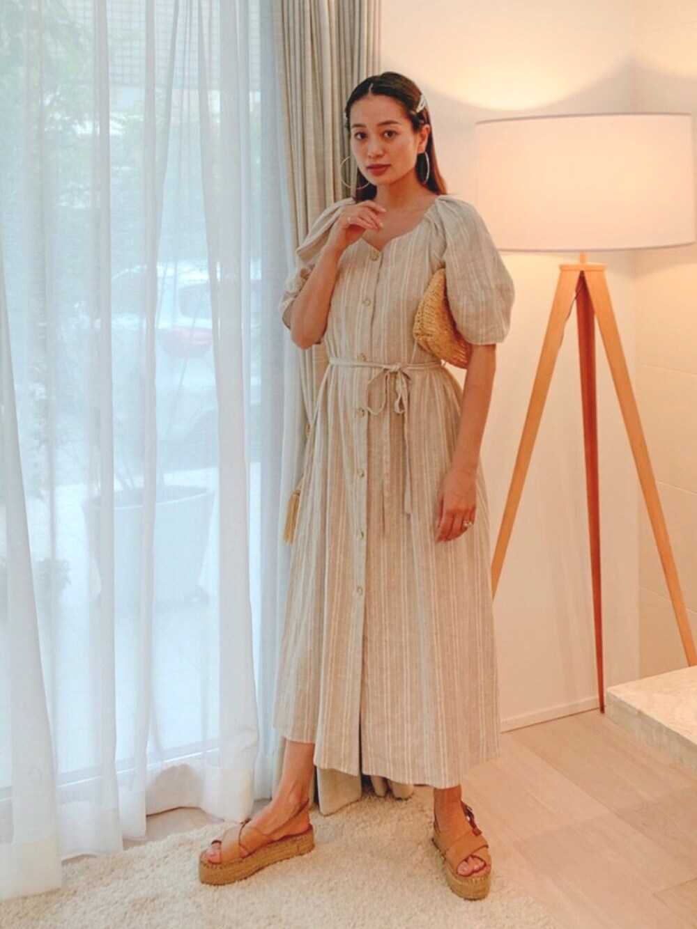 リネンのワンピース👗 ベージュストライプがお気に入り🤗